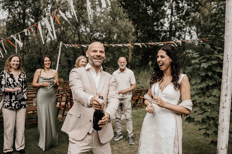 Een maand voor de bruiloft ontvang je een vragenlijst. Hierin kunnen jullie alle wensen, ideeën en andere belangrijke info kwijt. Een week voor de grote dag plannen we een online koffiemomentje om het draaiboek door te nemen – van getting ready tot en met het trouwfeest. En natuurlijk genieten we alvast van een flinke dosis voorpret!